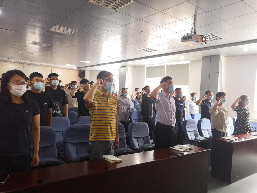 活动中,全体党员通过“灯塔-党建在线”网络平台收看了部分“抗疫榜样”在抗击新冠肺炎疫情期间敢于牺牲、勇于担当、敬业奉献的感人故事和事迹,党员们结合自身“抗疫”经历,分享了自己的体会和收获。随后,在《国际歌》背景音乐中,全体党员高举右拳,在庄严的党旗下用饱满的激情和洪亮的声音重温了入党誓词,表达了作为共产党员的自豪感与使命感,抒发了对党忠诚的意志和信念。