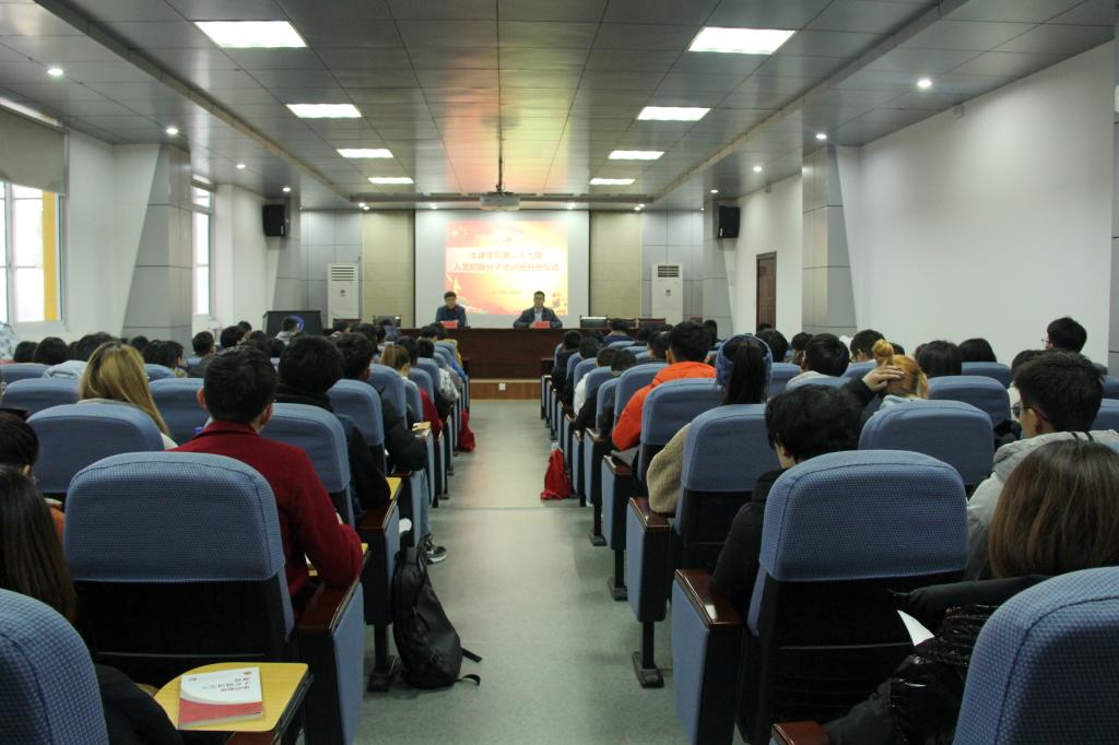 12月9日下午,pp电子游戏官网第二十七期入党积极分子培训班在J15-219报告厅正式开班,学院党委副书记(主持工作)宋西路、党委干事王贝贝及118名入党积极分子参加了开班仪式。