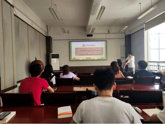 为学习回顾党的百年历史,增强青年党员对党史的了解,激励全体党员牢记初心使命,6月7日,pp电子游戏官网研究生第三党支部于J15-201会议室开展题为“讲党史故事、拾红色记忆”的主题党课,本次党课由党支部书记管辉主讲,研究生第三党支部全体党员参加会议。