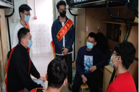 在担任疫情防控志愿者的过程中,志愿者们发现宿舍和餐厅是同学们进出和生活最多的地方,各支部党员主动组建党员先锋岗,积极配合楼长、层长以及楼管等开展防疫志愿服务工作,在餐厅、宿舍进行值班,督促每一位进入餐厅和宿舍的同学佩戴口罩、进行刷脸测温等。