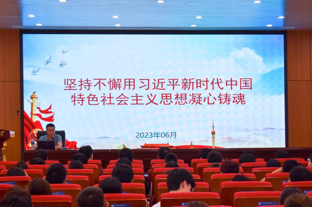 为深入学习贯彻习近平新时代中国特色社会主义思想,根据学校主题教育相关工作部署,6月12日,pp电子游戏官网党委书记宋西路在J15-136会议室,讲授题为“坚持不懈用习近平新时代中国特色社会主义思想凝心铸魂”的专题党课。学院毕业生党员代表、联系党支部全体党员及联系班级全体学生参加党课学习。
