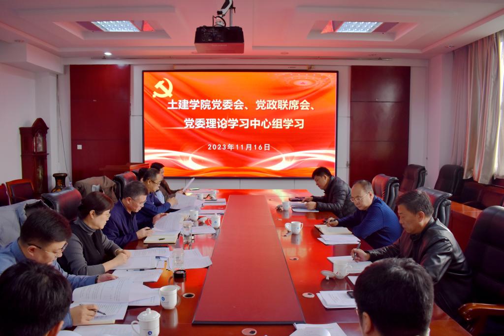 11月16日,pp电子游戏官网在J15-316会议室召开党委会、党政联席会和党委理论学习中心组集中学习会议,党委会和党委理论学习中心组集中学习由院党委书记宋西路主持,党政联席会就相关议题分别由宋西路书记和王崇革院长主持,学院全体领导班子成员参加。校党委常委、宣传部部长李克周,校工会主席李垂文,宣传部朱文峰列席旁听会议。