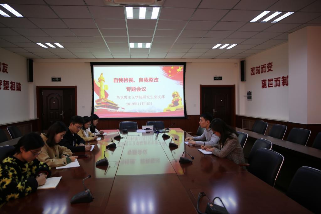 11月15日,根据学校“不忘初心、牢记使命”主题教育工作安排,学院研究生党支部在J9-223会议室召开“自我检视、自我整改”专题会议。会议由支部书记邴建伟主持,支部全体党员参加。