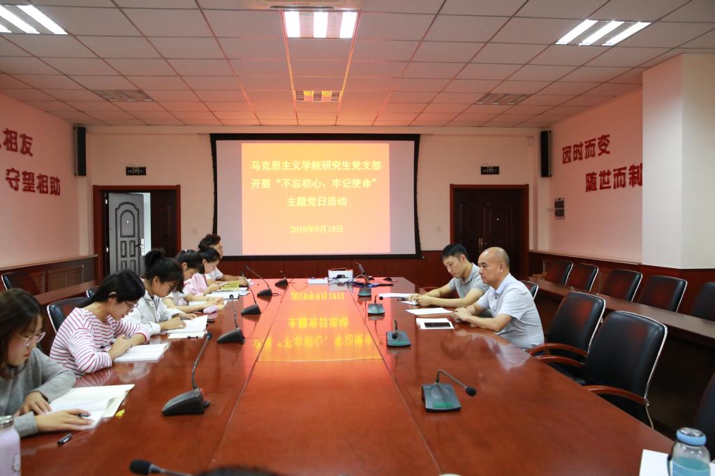 9月19日下午,beat365正版唯一官网必一研究生党支部开展“我的初心使命”主题党日活动。学院党委书记郭加书、全体研究生党员参加活动,活动由研究生党支部书记邴建伟主持。