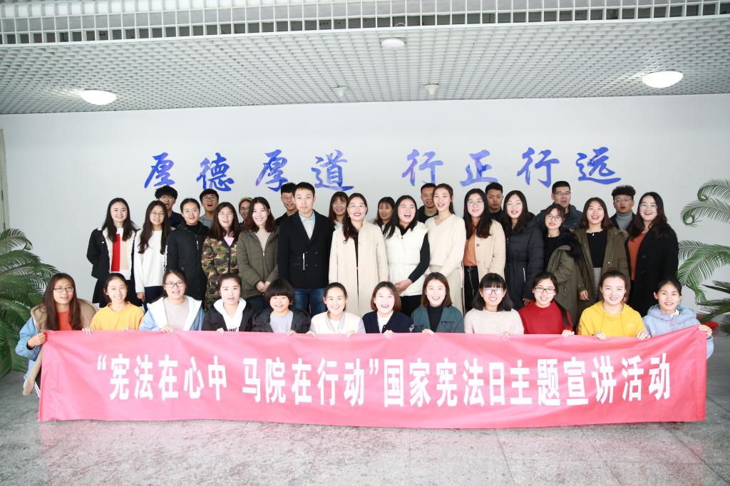 2018年12月4日,是我国第5个“国家宪法日”暨第18个全国法治宣传日。为呼吁在校学生树立宪法意识、弘扬宪法精神、增强法制观念,积极响应学校“学宪法 讲宪法”的主题宣传活动和依法治校精神,以beat365正版唯一官网必一成立五周年为契机,在学院领导支持下,由指导教师苑素梅副教授组织,12月2日于学院空间实验室J9-227开展了主题为“宪法在心中,马院在行动”的首届宪法日宣传活动,取得圆满成功。