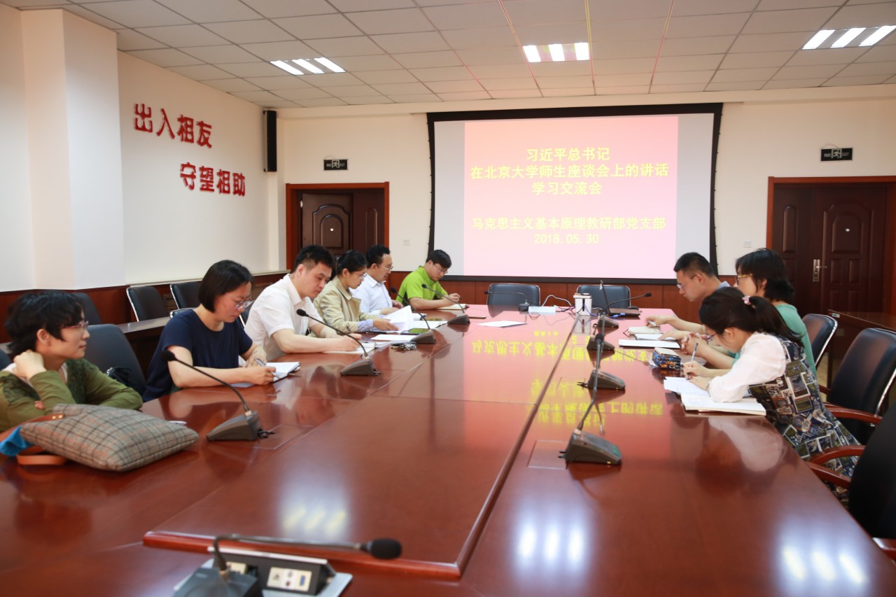 5月30日,马克思主义原理教研部党支部召开支部大会,集体学习习近平总书记在北京大学师生座谈会上重要讲话精神。