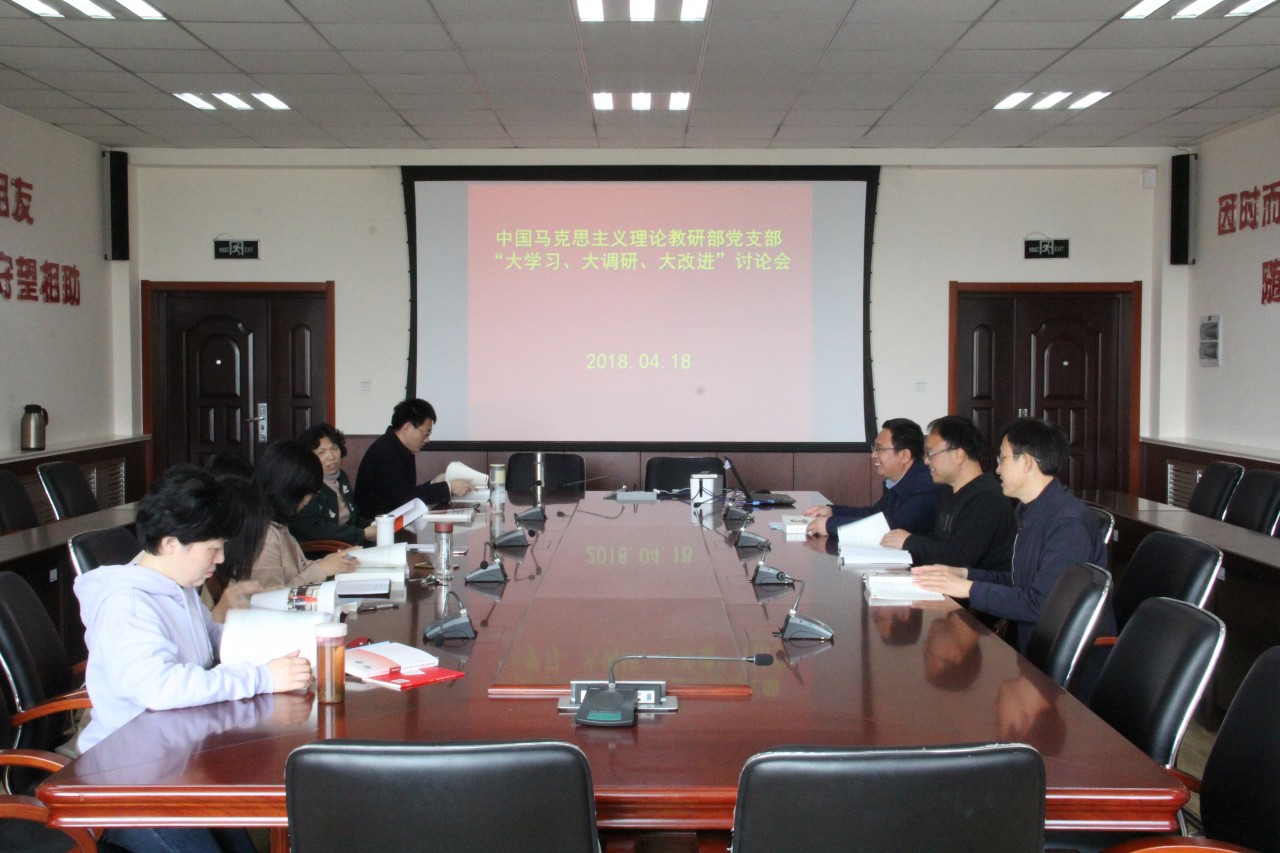 2018年4月17日,马克思主义基本原理教研部党支部召开“大学习、大调研、大改进”讨论会,院长逄奉辉参加指导会议,支部全体党员参加。