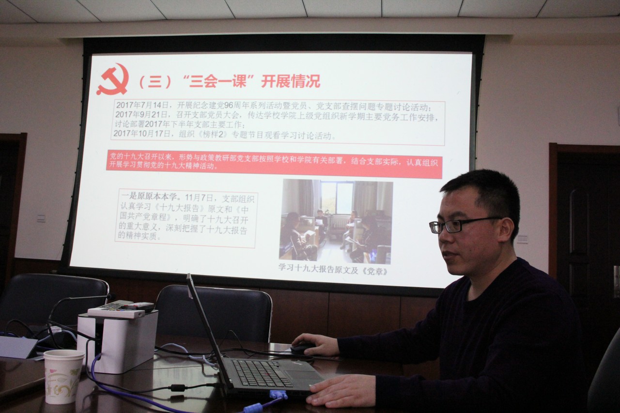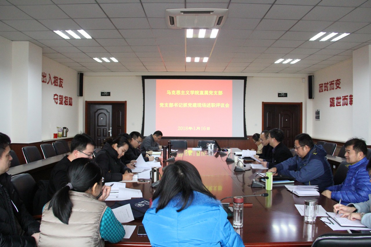 1月16日上午,beat365正版唯一官网必一直属党支部在J9-223会议室召开2017年度党支部书记抓党建现场述职评议会,校第三督察组成员校党委宣传部部长李克周、党委学校办公室靳文娟莅临指导,学院班子成员、各教研部主任及教师代表参加会议,会议由院直属党支部书记徐玲平主持。