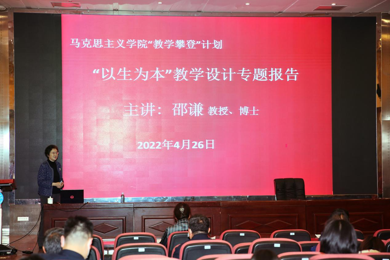 4月26日下午,学院在J9-144召开期中教学检查动员大会,同步启动“教学攀登”计划,邀请山东省教学名师邵谦教授作首场专题报告。会议由副院长常春主持。
