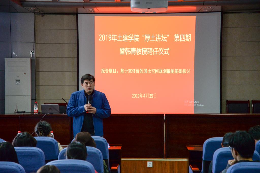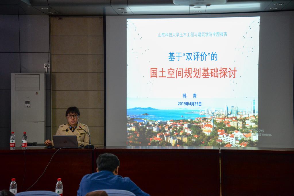 4月25日下午,青岛市自然资源和规划局韩青研究员在J15-219为学院师生作了题为“基于双评价的国土空间规划编制基础探讨”的报告。学院党委书记张东、城乡规划系主任代朋及师生代表参加了本次活动,报告由代朋主持。