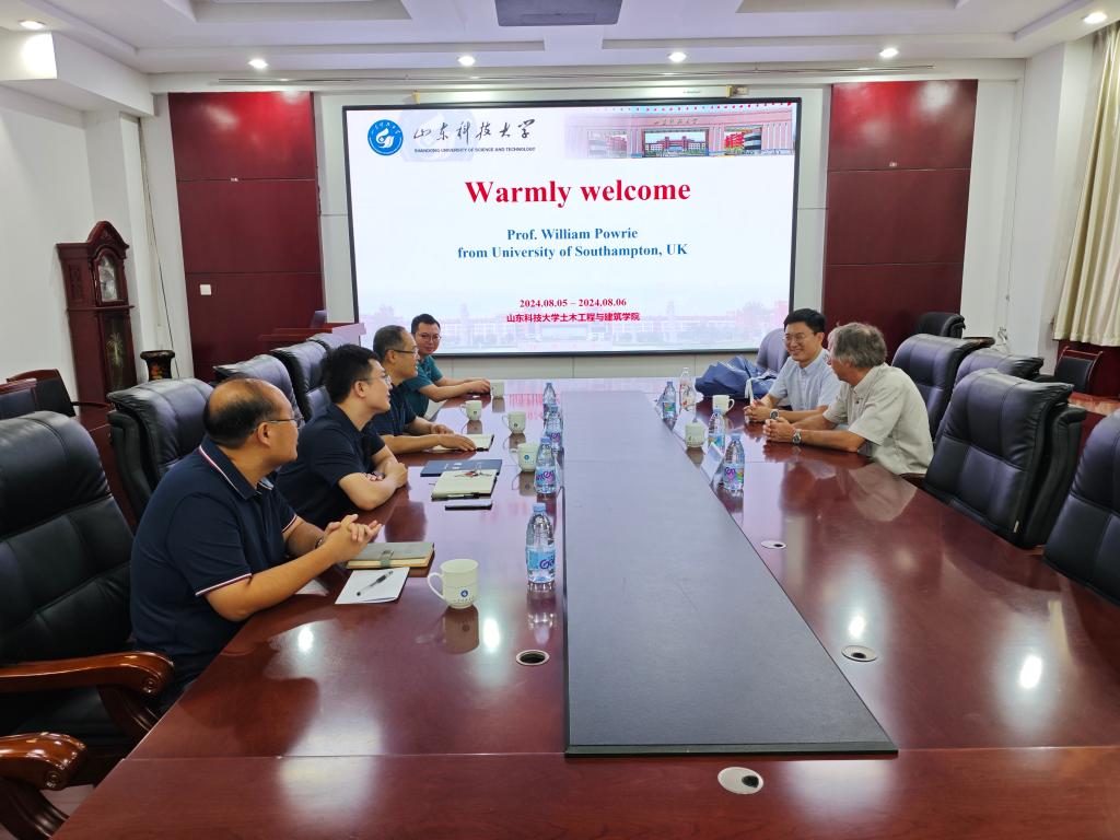 8月5日,在座谈会上,王崇革院长对Powrie院士的来访表示热烈欢迎,并介绍了pp电子游戏官网在专业建设、学科建设、人才培养及实验室建设等方面的成果。王院长希望通过此次交流深化双方的合作,并为Powrie院士颁发聘书。Powrie院士对学院的热情接待表示感谢,Powrie院士回忆起25年前初次造访中国,与我校杰出校友李术才院士在三峡大坝建立的深厚友谊,并指出青岛与南安普顿同为友好合作城市,期待未来在科学研究和实验室建设等方面加强合作,实现共同发展。Powrie院士介绍了其在环境和交通岩土工程方面的研究,并就当前领域内相关问题进行了探讨,他还诚挚邀请学院的年轻教师和研究生到南安普顿大学进行学术交流。