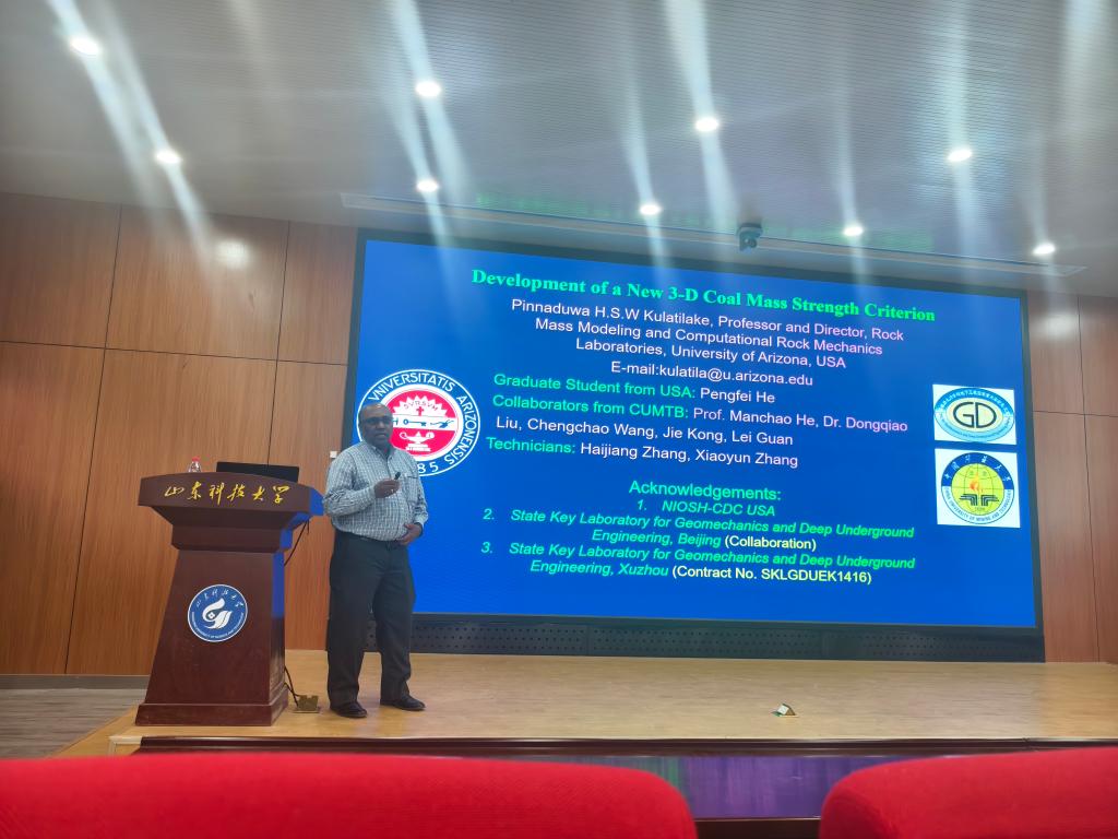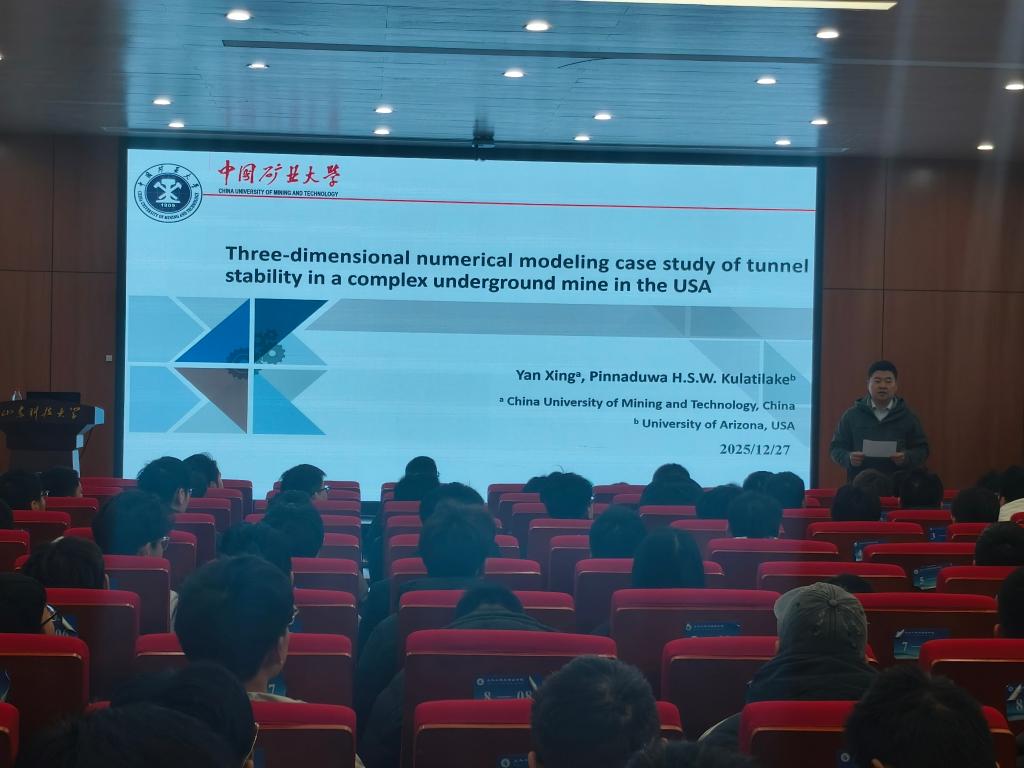 为拓展国际视野、聚焦学科前沿,pp电子游戏官网于12月27日在J15-136报告厅举办学术交流会,本次交流会特邀国际著名采矿岩石力学专家、美国亚利桑那大学岩体模拟与计算力学实验室主任Pinnaduwa H. S. W. Kulatilake教授及YanXing博士,围绕“矿井工程与煤体力学前沿研究”展开深度交流与研讨。会议由pp电子游戏官网副院长杨旭旭主持。