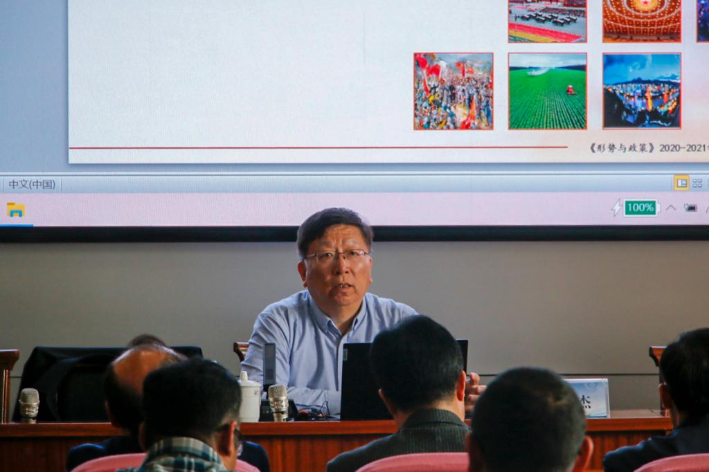 5月7日,校党委常委、副校长张英杰在J4-319报告厅作党史学习教育专题宣讲,题目为《学史明理,为实现中华民族伟大复兴而努力奋斗》。pp电子游戏官网党政领导班子成员、党支部书记、党员师生代表到场聆听了宣讲报告。
