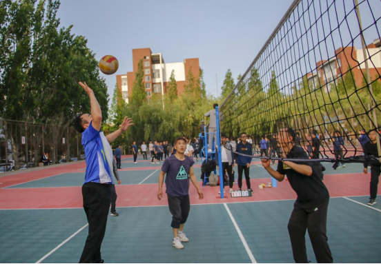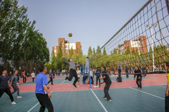 一声哨响,教职工们开始发力,起跳、发球、拦网、扣球,活力四射,每一次精彩传球与得分都引来欢呼阵阵,加油助威声此起彼伏,队员们个个精神抖擞,团结合作,配合默契,气氛热烈,赢得围观教职工阵阵喝彩。在比赛中,每一次的赢球,大家都互相拍掌,鼓舞士气,而每一次的失分,队员们互相拥抱,给予彼此鼓励。