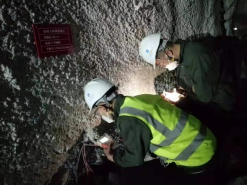 团队研究生在地铁隧道现场不畏艰苦认真工作
