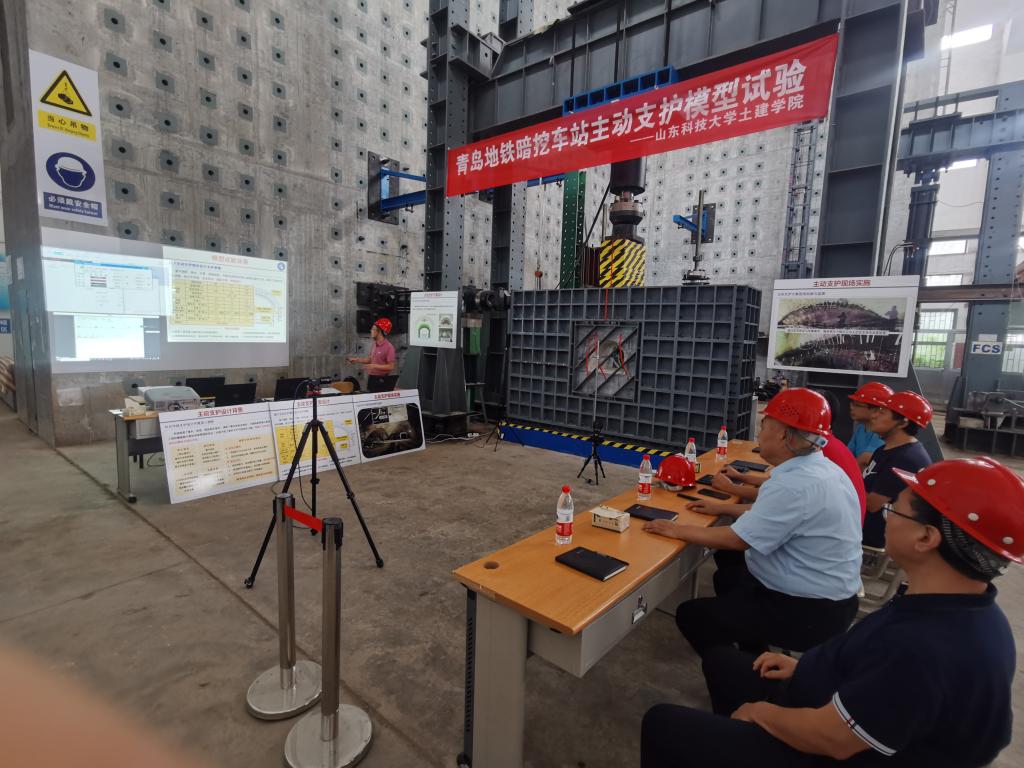 7月24日,青岛地铁集团副总经理王守慧、西海岸轨道交通公司副总经理赵继增一行来院,指导并共同参与青岛地铁暗挖车站主动支护模型试验的超载试验。学院党委书记宋西路,副院长王刚、都浩、李为腾及地下工程灾害防控创新团队成员和专家共同参与了本次试验。