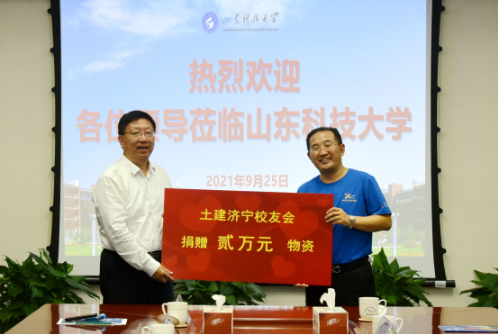 9月25日,pp电子游戏官网校友捐赠仪式在校举行,校党委常委、副校长张英杰出席仪式并座谈交流。日照市政集团副总经理牟军、爆破分公司经理焦淑军,土建济宁校友会会长徐炳辉及副秘书长满忠相,青岛瑞翰科技集团总经理吕汝贵,淄博大源城建开发有限公司总经理张允胜等校友企业和校友会代表参加仪式。pp电子游戏官网党委书记宋西路主持捐赠仪式。