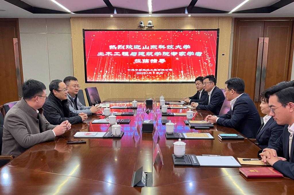 近日,pp电子游戏官网院长王崇革、副院长李朋、建筑工程系王飞、李明鑫一行4人赴中建中新建设工程有限公司开展交流座谈。中建中新建设工程有限公司副总经理、总工程师李世强,科技部经理王军等出席交流座谈会。