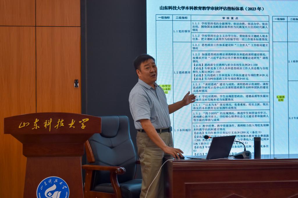 为全面落实立德树人根本任务,进一步提升学院本科教育教学质量,9月1日,pp电子游戏官网于J15-136举办本科教育教学审核评估培训和教师教育教学创新报告会。报告会邀请刘玉峰教授、张莉老师两位老师做报告,会议由都浩副院长主持,pp电子游戏官网全体教职工参会。
