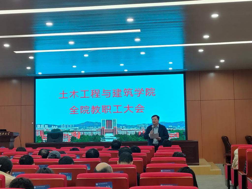 会上,宋西路向全院教职工传达了学校2024年工作会议上罗公利书记的讲话精神。院长王崇革传达了学校2023年度工作总结及2024年度工作安排,并从教学、科研、人才引进、实验室建设、研究生培养、学团工作等方面总结了学院2023年度工作,并对学院2024年度重点工作及常规工作进行了安排部署。副院长李朋就学校本科教学工作会议精神进行了传达,并对学院本科教学工作、专业建设、培养方案修订、学科建设及师资队伍建设等重点工作进行了布置。
