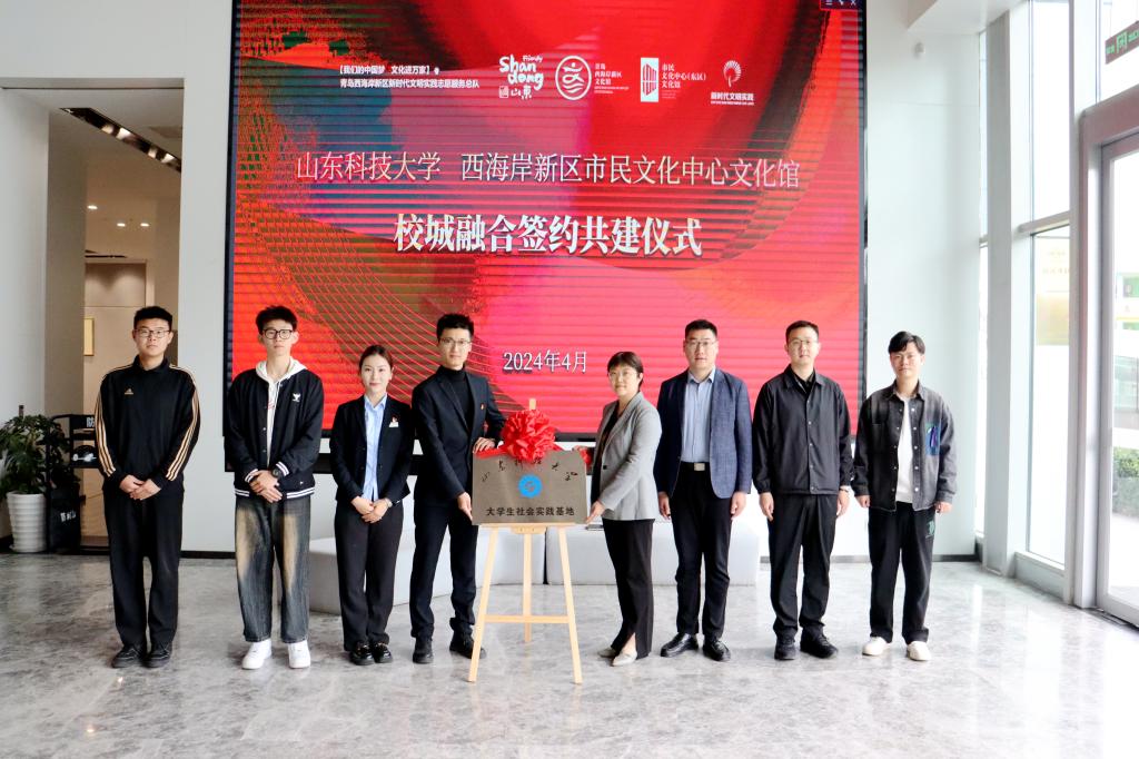 4月23日,pp电子游戏官网与西海岸新区市民文化中心文化馆、图书馆共同举行“大学生社会实践基地”签约揭牌仪式。学院党委副书记高静,学工办主任、团委书记王贝贝,辅导员王瑜、董继先,西海岸新区市民文化中心文化馆负责人唐凯,群文部副主任吕悦雯及学生代表参加签约揭牌仪式。仪式由吕悦雯主持。
