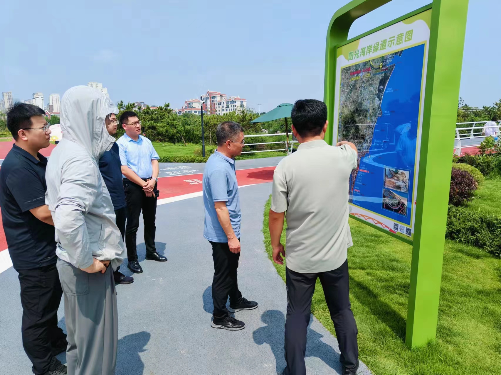 在阳光海岸绿道,在讲解员的带领下,重走习近平总书记考察路线,实地感受修复治理后的海岸线生态环境,详细了解了绿道“依托原貌、临场设计”的建设理念。