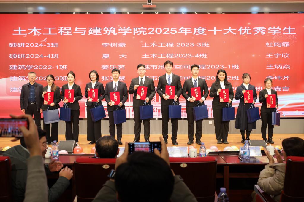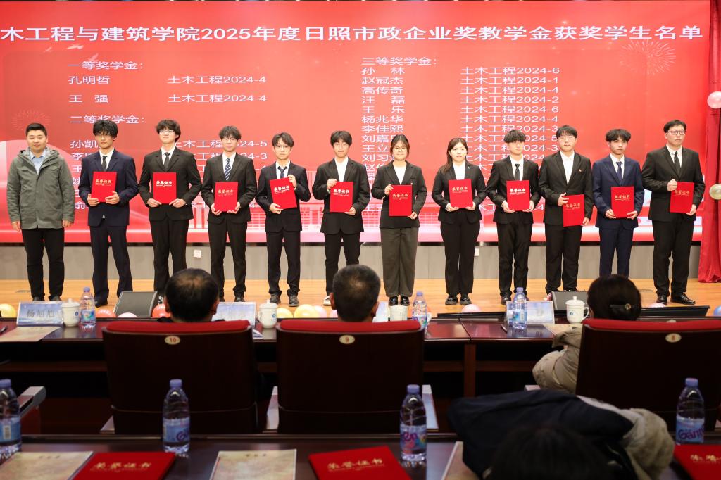 匠心筑梦强国路,青春奋进正当时。12月16日,pp电子游戏官网于图书馆求新讲堂举办土建之星文艺汇演暨2025年学院十大优秀学生、日照市政企业奖教学金颁奖典礼,pp电子游戏官网党委书记宋西路、院长王崇革、副书记兼副院长高静、副院长杨旭旭、学院教师代表及团委全体辅导员老师参加活动。