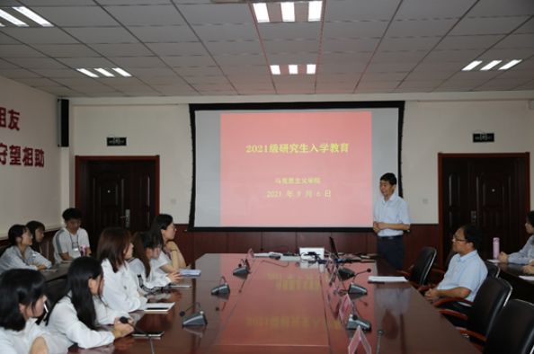 9月6日,学院开展了2021级研究生入学专业教育。副院长邵勇对新生表达了殷切的期望,希望2021级新同学能够明确目标、制定规划,将每个阶段的任务完成好、实现好,不负韶华。贾强老师带领同学们学习了最新版《研究生手册》,解读了相关规章制度,明确学术规范。9月7日至10日,邴建伟老师对研究生的行为规范、安全意识、心理健康等进行了教育引导并提出了明确要求,强化学生相关意识。9月8 日,徐波书记为新生作了题为“坚定理想信念,扬帆奋进征程”的专题教育,号召同学们在学习经典、感悟真理、守正创新中,坚定理想信念,创造智慧人生。