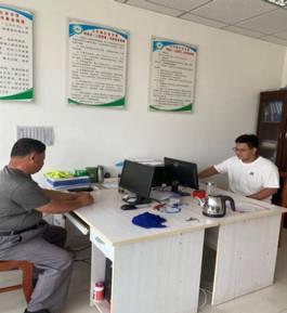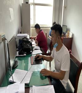 在办公室核对云上汤阴APP信息工作 调研部落村农民书屋建设