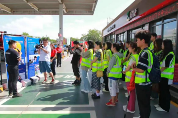 7月28日,邵嘉懿跟随东营市“青鸟计划”实践团来到中国石化山东石油东营分公司第91加油站,共同探秘智慧能源,全方位了解中国石化在绿企创建和环境保护方面所做的努力。东营石油公司负责人现场讲解了油气回收、双层罐改造、光伏发电等加能站环保工程,近距离感受中国石化践行“绿色企业”的责任和担当。在加油站卸油区,详细了解了中国石化油品质量和东营石油公司HSE管理体系。随后,参观了中国石化充电桩、单晶硅光伏发电板以及太阳能+空气源热泵,充分感受到中国石化打造绿色环保的生态服务圈。