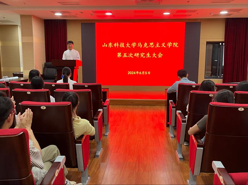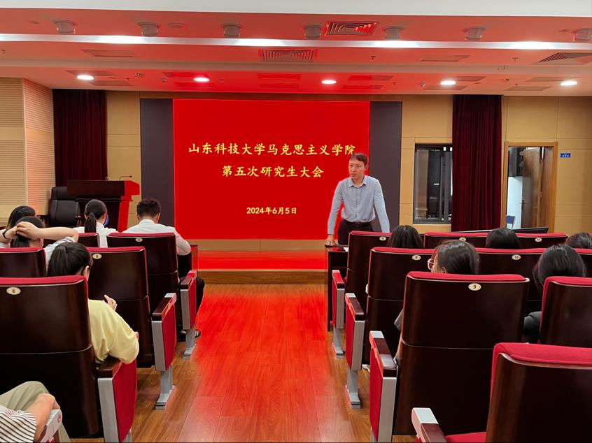 6月5日下午,beat365正版唯一官网必一beat365正版唯一官网必一第五次研究生大会在图书馆4号报告厅顺利召开。学院全体研究生、辅导员邴健伟参加会议,2023级研究生张鑫豪主持本次会议。