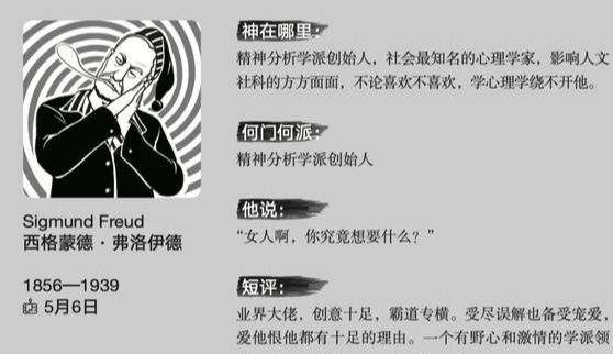 本书从时间角度将心理学发展分为:雏形时代、崛起时代和开拓时代三个发展阶段,就各发展阶段的典型性学科事件进行了介绍。但本书区别于其他介绍心理学史书籍的最大特点在于本书的撰写视角和文风。本书以心理学大神们的奇闻轶事为切入点,讲清心理学的脉络,这些从目录中的题目便可窥得一二,如:德国间谍苛勒、威风八面的弗洛伊德、自卑丑男阿德勒、爱咋咋的森田正马等等。这样的切入点和文风,能够让读者在轻松愉快的状态下阅读并了解心理学发展历程及各个大神的核心观点,是为推荐本书的首要理由。