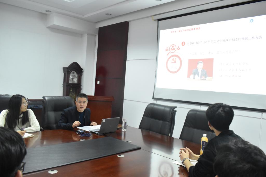 12月7日下午,pp电子游戏官网党委书记宋西路为所联系的班级工程管理19-1班,以“开启新阶段,踏上新征程”为主题,宣讲了党的十九届五中全会精神,辅导员艾山参加了宣讲会。