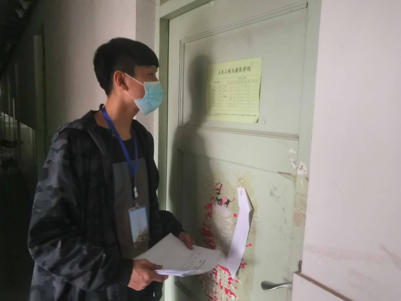在宿舍中,学生党员们佩戴挂牌,主动亮明身份,帮助楼管人员登记返校学生信息,核查各宿舍填写《学生宿舍卫生消毒通风测温记录表》《返校学生轨迹记录表》和是否存放违禁物品的情况,为省外隔离的学生配送餐食。“学生党员先锋岗”成员高佳丰表示,作为一名毕业生党员,能够参加此次党员先锋岗感到十分荣幸,在工作过程中也深刻体会到学校学院防疫工作的严格与工作人员的辛苦。