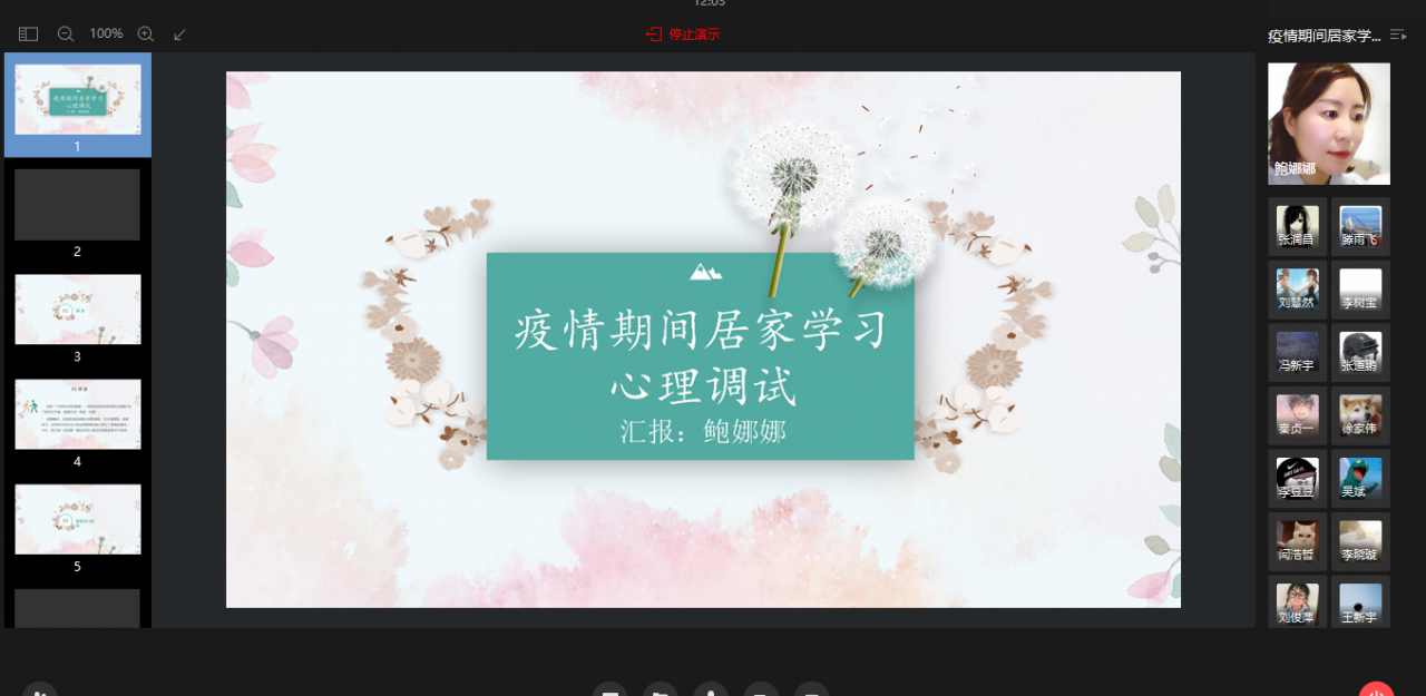 鲍娜娜结合国家疫防控形势,针对停课不停学、居家学习的实际,通过对学生目前居家学习状态及相关心理成因进行系统分析,从学习态度改变、学习动机激发、行为塑造等方面,就居家学习情绪调节、学习计划制定、学习时间安排、学习效率提高以及与家人的沟通等问题,和同学们进行了深入的在线交流、互动和解答,帮助学生调整心态,注重习惯养成,掌握沟通方式,合理规划居家居家时光,充实快乐地度过居家学习生活。