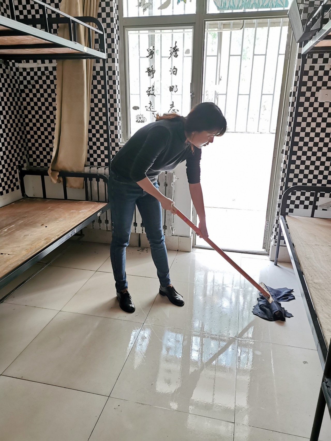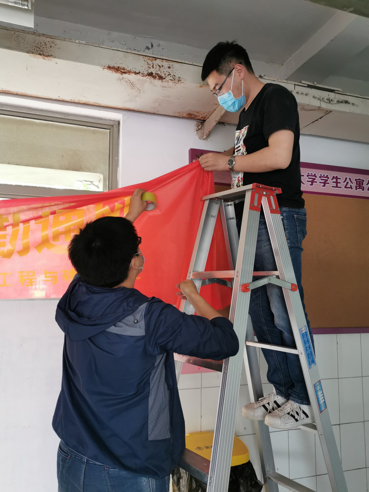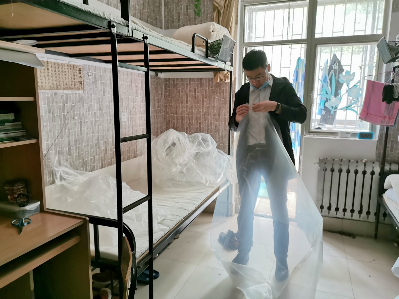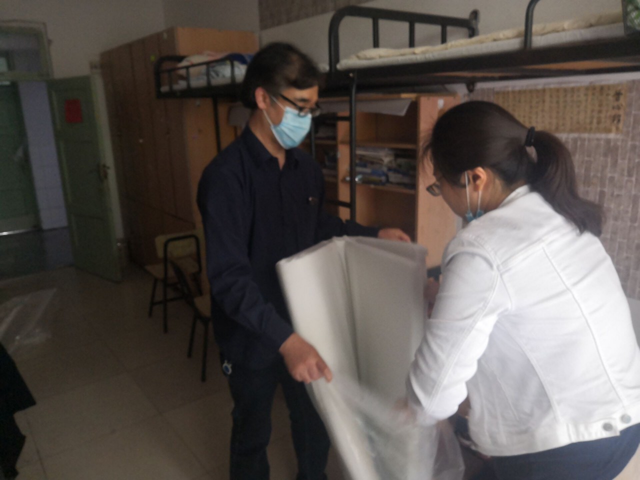 pp电子游戏官网团委对返校学生进行全面摸排,建立返校学生信息台账,一人一策进行精细化安排。考虑到宿舍较分散不利于学生安全和学校管理的情况,学院将本科生宿舍进行整合,男生统一安排在GB2一楼。近一周,学院全体辅导员集思广益,拟定宿舍准备方案,随后马不停蹄,对征用的9个整合宿舍进行整理、打扫、消毒。辅导员们将整合宿舍原成员的被褥、衣服进行打包收纳,书架物品进行归置并封存,衣柜使用封条封住,开窗通风,清理垃圾,既最大限度的保障宿舍原成员物品的安全,又全力为新入住的同学提供干净整洁的居住环境。学院在每个宿舍都放置了《致全体返校学生的一封信》《学生宿舍卫生消毒通风测温记录表》《返校学生轨迹记录表》等材料,每个宿舍均安排舍长统筹负责返校后的体温测量、消毒通风、晚点名等各项事务。