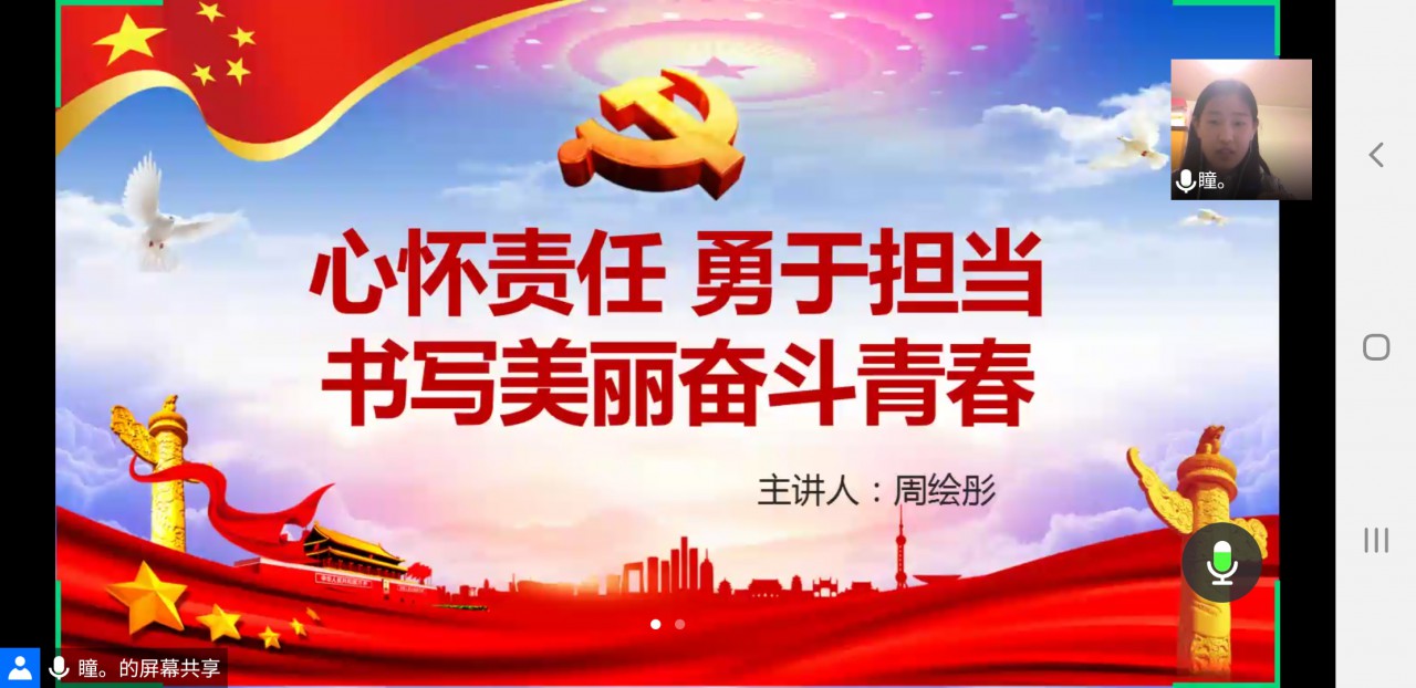 近日,由pp电子游戏官网校研究生会学术部与初心使命研究生理论学习小组主办、pp电子游戏官网研究生会承办的思政类研究生讲坛第9讲通过腾讯会议APP平台成功举办。pp电子游戏官网2017级硕士研究生周绘彤担任主讲人,讲坛题目为《心怀责任,勇于担当,书写美丽奋斗青春》。