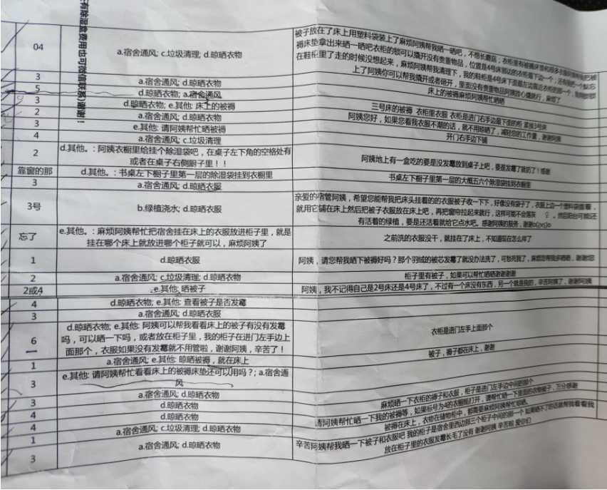 上午,pp电子游戏官网辅导员们按照同学们需求进入宿舍进行服务,帮助学生晾晒衣服,整理宿舍卫生,给已经干枯的绿植浇水,给宿舍通风,把同学们需要晾晒的被褥放到阳台晾晒或者抱到繁星广场晾晒。下午,老师们把晾晒好的被子和衣服整理好放回学生宿舍,整理好宿舍卫生,关好宿舍门窗后离开。