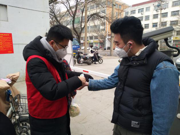在山东省滨州市滨城区市中街道市南社区,pp电子游戏官网2018级研究生周臣像往常一样在社区服务岗进行志愿服务,使用红外线体温测量计为进入社区的居民测量体温便是他的工作之一。