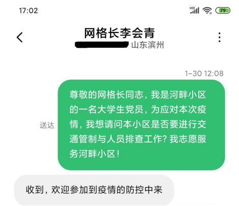 “他是我们市南社区的第一名志愿者。”社区网格长李会青说道,“周臣在1月24日就联系我,主动请缨。1月30日,正是社区缺人手的时候,他正式开始了工作。他工作的时候很踏实、很仔细,大家都对他赞不绝口。”对于担任社区志愿者这件事情,周臣认为:国家兴亡,匹夫有责,越是在国家艰难的时刻,共产党员越要冲到前线去,投身到为人民服务的工作中去。