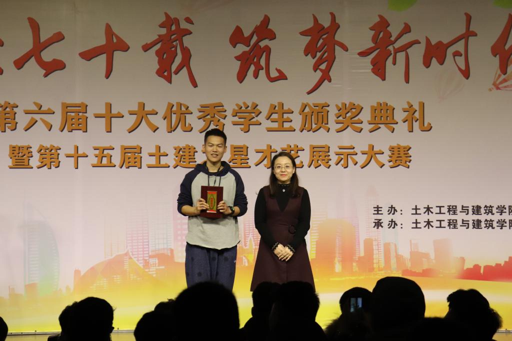 12月3日,pp电子游戏官网于大学生活动中心隆重举行第六届“十大优秀学生”颁奖典礼暨第十五届“峥嵘七十载 筑梦新时代”土建之星才艺展示大赛。pp电子游戏官网党委副书记(主持工作)宋西路、院长王崇革、团委书记于娜及全体专兼职辅导员到场观看。