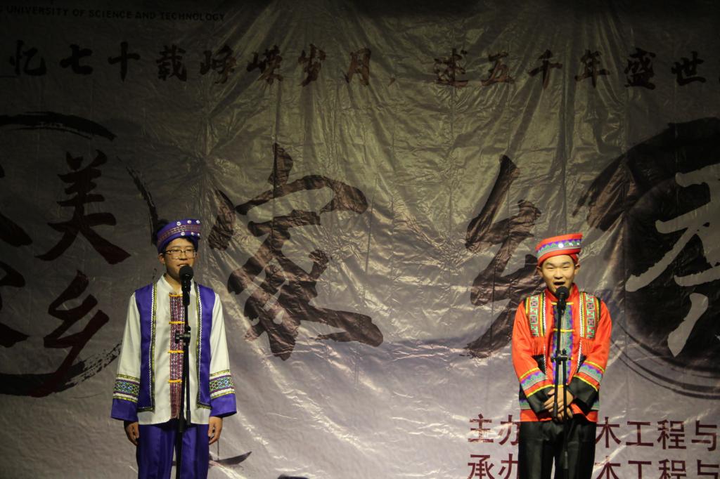 活动伊始,彩云之南--云南队以精彩的PPT形式带我们领略彩云之南,雀舞蹁跹。一首悠长的《七彩云南》带我们进入到了峡谷江河,大美滇池,象谷竹楼,七彩云南。紧接着,一支古老的甩手舞与将鄂西的风土情展现的淋漓尽致,之后那首动听的土家语歌曲又将湖北与祖国紧紧联系在了一起。随后,跟着勒是雾都队的步伐,我们展开了一场“山城”的魅力之旅,热辣的火锅养出了重庆人火辣的性子,养出了重庆人豪爽的个性。渤海之滨,燕北大地,这个古老的渡口在津卫之队的表演下以年轻的身姿阐述着它悠久的历史。在科大N.O.B街舞协会同学的精彩舞蹈之后,比赛重归激烈的竞争中。西藏队的歌舞《锅庄》向观众介绍了西藏人民对生活的热爱与西藏的风土人情。紧接着,啷个嫩个嘞个队又再次将重庆的火辣与热情带上了舞台。血脉相连的情感,新疆队用美丽与彪悍的舞姿,秀出大美新疆。最后,校大艺团曲艺队用相声《论捧逗》,为今晚精彩的表演做了完美的结尾。