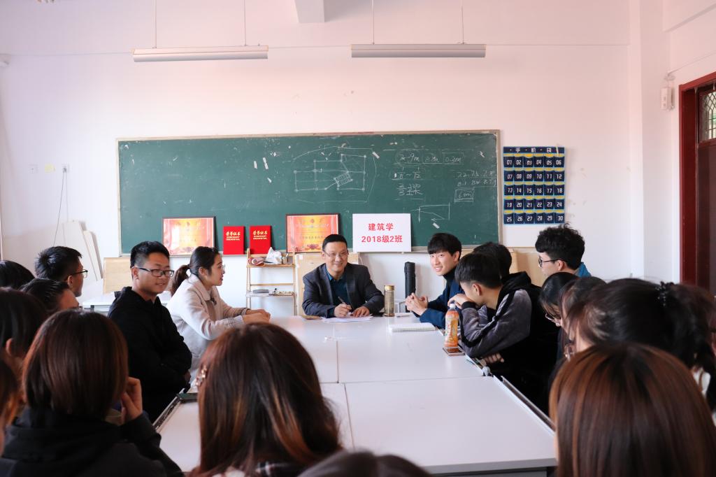 11月8日,pp电子游戏官网副院长张宪堂参加了建筑学18-2班班会,该班级为领导干部深入基层联系学生的对接班级。本次班会主要以座谈会的形式进行。
