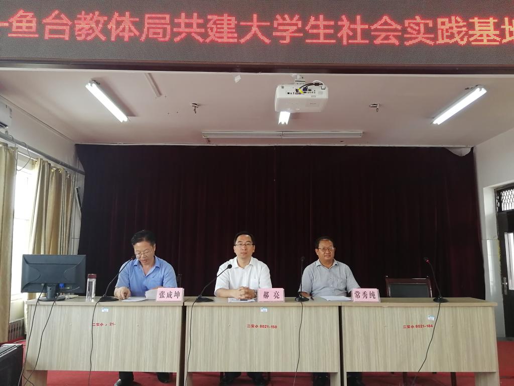 8月2日,pp电子游戏官网与济宁市鱼台县教育局举办了共建大学生社会实践基地签约暨挂牌仪式。鱼台县教体局副局长常秀纯、pp电子游戏官网党委副书记郝亮、鱼台县实验中学副校长王循明、鱼台县第二实验小学校长随灏、pp电子游戏官网团委老师王贝贝、张翌及燃梦公益志愿者代表参与了本次活动,本次仪式由教体局人事科主任张成坤主持。