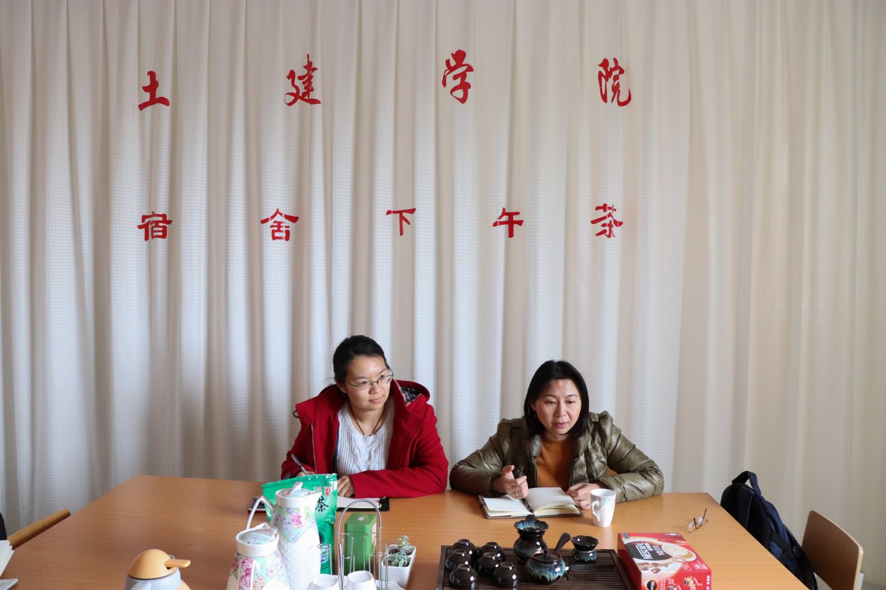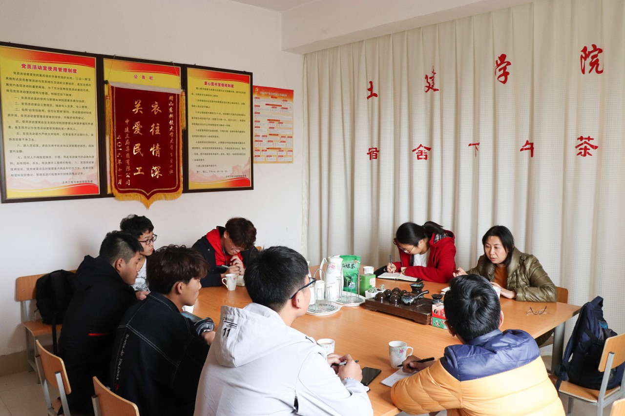 4月10日下午,pp电子游戏官网建环系主任丛晓春教授做客“宿舍下午茶”,团委辅导员张翌陪同,参加本次茶会的还有GB2-116宿舍的6位同学。
