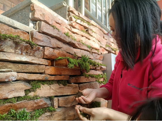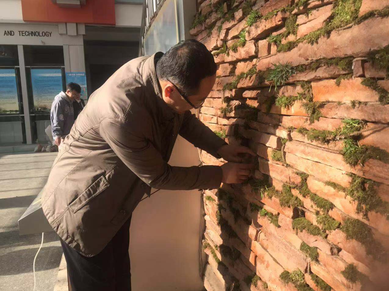 苔藓景观墙自四月初创立概念,前后历经概念设计、线稿绘制、景观规划、原料收集以及苔藓铺设,利用蓄水麻绳的毛细原理灌溉苔藓,在pp电子游戏官网楼西大厅绘制了一幅“绿色屏障”。后期养护中,除储水缸蓄水外在大厅处放置喷壶,通过倡导途经师生进行互助浇灌,在学院内形成互帮互助的优良氛围。