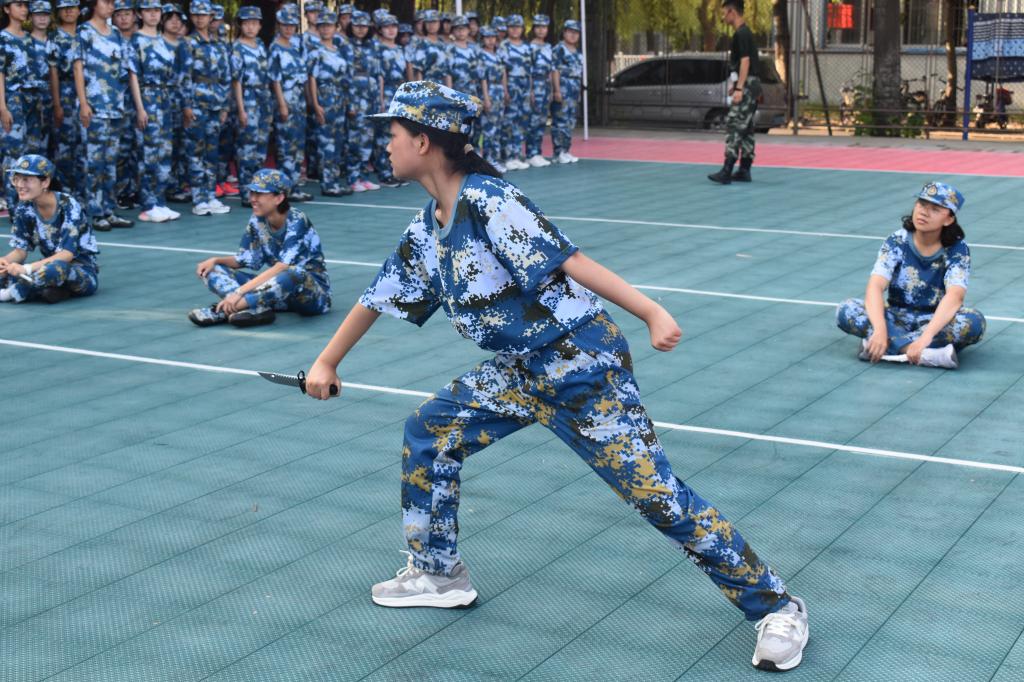 从第一天训练站军姿到稍息立正,从跨立敬礼到齐步并行,再到正步并行。每一次的突破,都经过了无数次的反复练习。方阵训练场上,土建学子以整齐划一的步伐和高昂的训练热情,展现了顽强不屈、迎难而上的土建精神。匕首操训练场上,三十余位女生巾帼不让须眉,展现土建风采。大家在教官的鼓励下努力训练,教官的一句句叮咛嘱咐时时刻刻都回响在耳边,一遍遍不厌其烦的练习、一次次汗水的挥洒,都是为了pp电子游戏官网的荣誉而战。烈日的暴晒击垮不了我们的意志;挥洒的汗水淹没不了我们心中的信念;全身的疲惫击败不了我们心中的斗志。