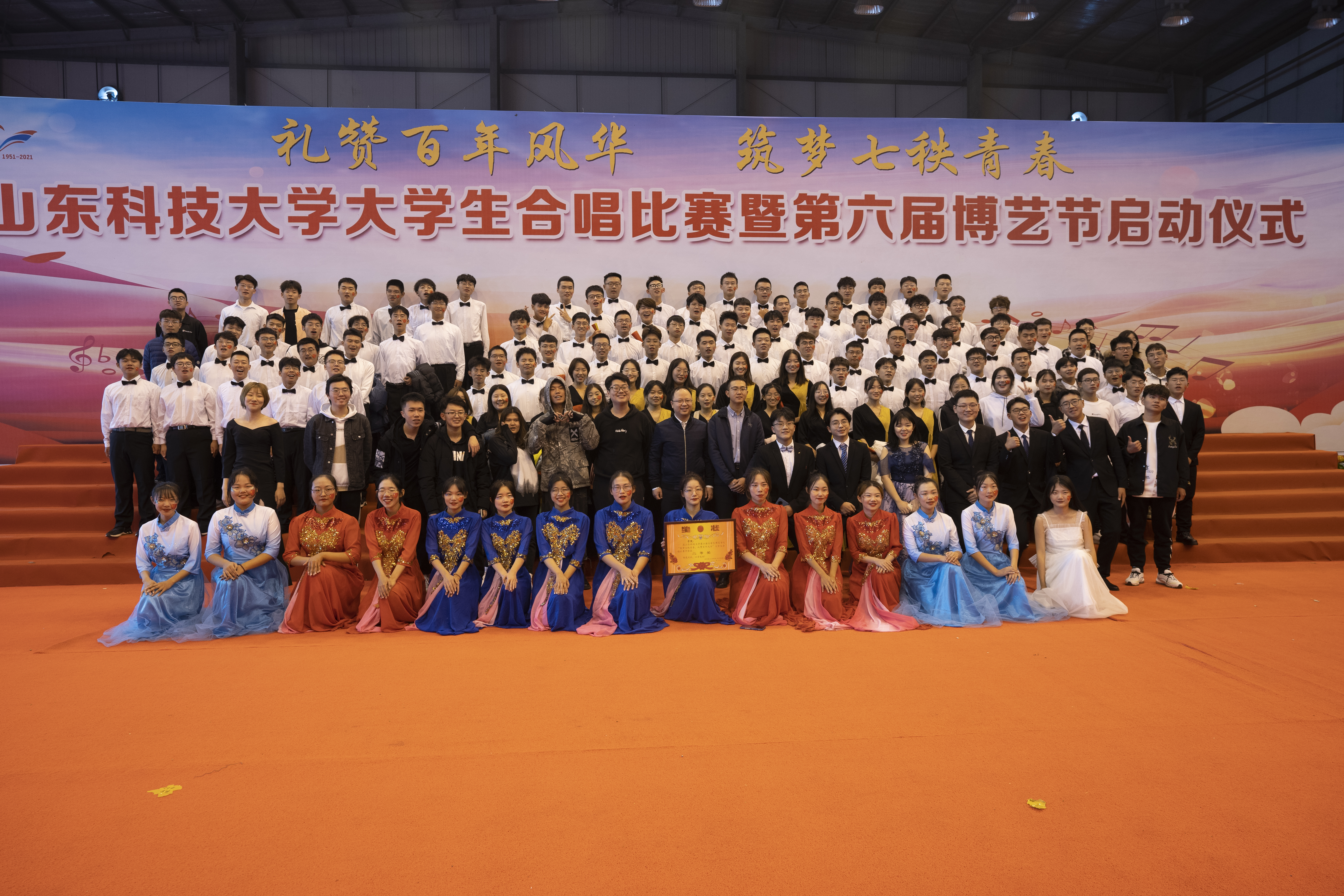 为庆祝中国共产党成立100周年、中华人民共和国成立72周年、pp电子游戏官网成立70周年,引领广大青年学生通过歌声表达爱党、爱国、爱校的深切情感,pp电子游戏官网于10月17日在体育馆举行“筑梦七秩青春,礼赞百年风华”合唱比赛。