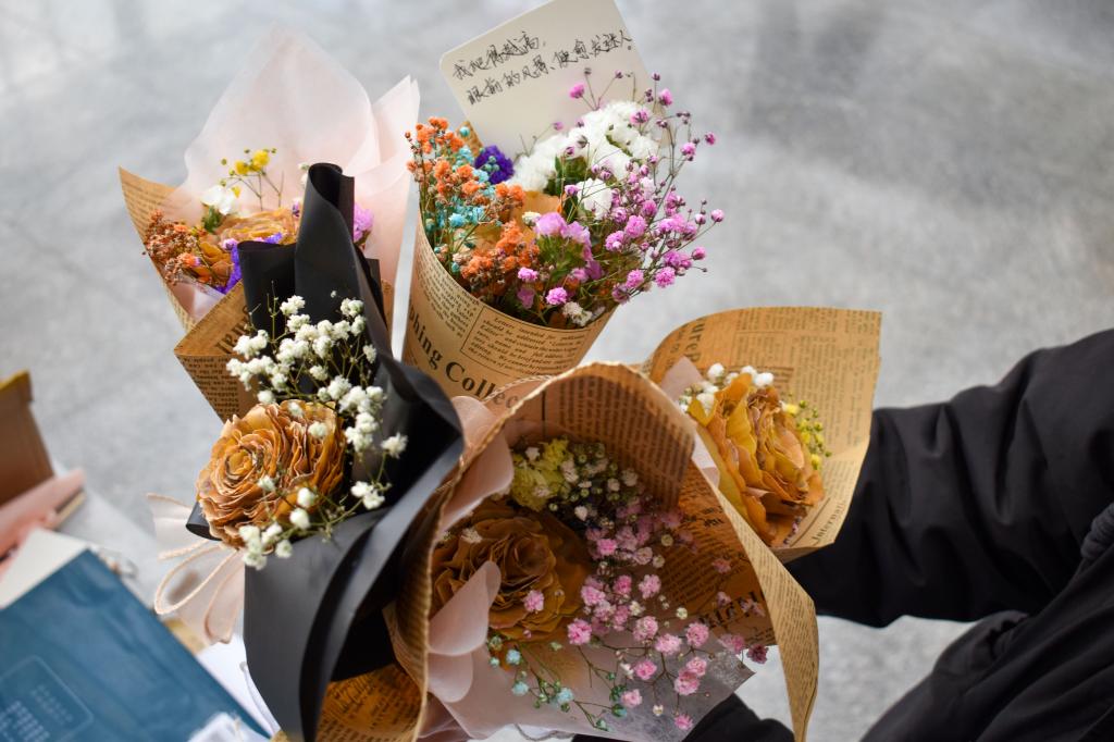 学生们在活动中尽情地展现自己的想法,他们利用银杏叶制作出玫瑰花,之后利用干花、叶子、花纸等材料装饰花束,最后填写祝福卡片。放眼望去,大家全身心投入在自己的制作中,以一片片落叶展示秋季的美好。在此次活动中,同学们把在校园内捡到的银杏叶用来做手工,既可以美化校园环境,还可以让银杏叶有一个更好的归宿。通过彩纸和丝带的装饰,更增添一份美感。创作完成后,各位参与者携带创作完成的创意花束拍照留念。