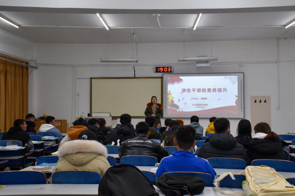 为认真贯彻落实习近平总书记关于青年工作的重要思想,进一步加强pp电子游戏官网基层团干部队伍建设,提升学生干部的工作水平,12月17日晚,pp电子游戏官网于S1-209教室举办“青马工程”基础班第四讲。本次课程由pp电子游戏官网学生工作办公室辅导员鲍娜娜主讲,“青马班”全体学员和学生会、研究生会干部参加会议。